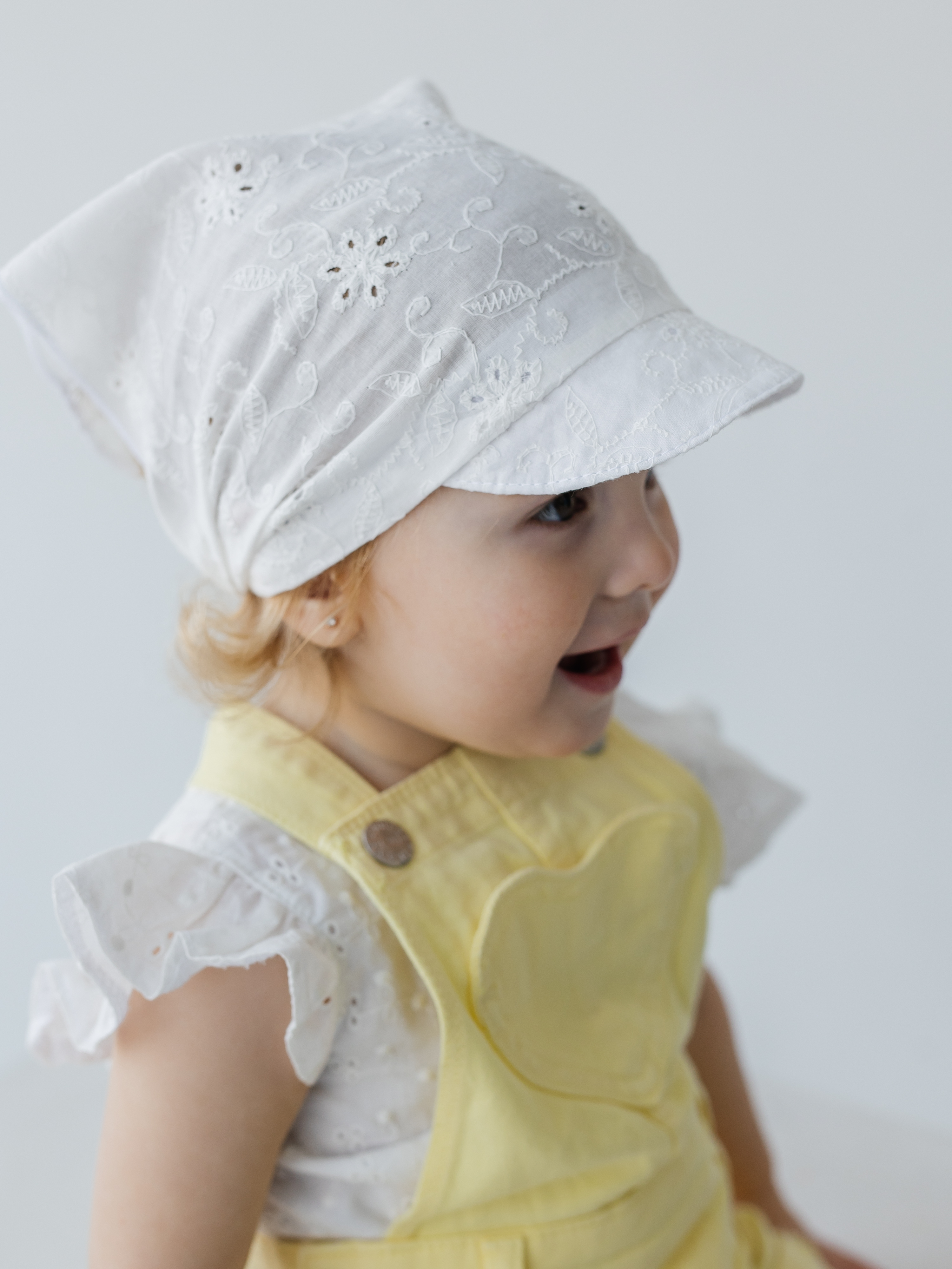 Повязка на голову для девочки - оригинальное и модное украшение, которое понравится Вашей малышке. Головной убор от солнца детский изготовлен из 100 % хлопка подходит на ребенка от 6 месяцев до 5 лет. Материал нежный, гипоаллергенный, хорошо пропускает воздух и впитывает влагу, защищает от перегрева в летний зной на пляже. Косынка для девочки летняя снабжена козырьком, который закрывает детские глазки от ярких солнечных лучей. Качество швов и кроя на самом высоком уровне. Бандана детская сочетается с распущенными волосами, хвостом или челкой, локоны не будут лезть в глазки и мешать непоседе. В большинстве случаев, повязка для девочки, действительно, экономит время на создание прически. Косынка детская универсальна и сочетается с любой одеждой: платье, сарафан, юбка, шорты, купальник. Подобрав летний аксессуар в тон к одежде, можно быть уверенной в том, что наряд ребенка будет на высоте. Косынка для девочки крепко держится на голове, не слетает при порывах ветра и активных движениях, удобная резинка сзади хорошо фиксирует повязку на голове. Косынка детская пляжная компактная: легко складывается и помещается в маленькую сумку или в карман. В отличие от обычной косынки, такая повязка на голову для малышей с термонаклейкой выглядит стильно и современно. Косынка летняя для девочки незаменимый атрибут детского гардероба. Бандана станет отличным подарком на день рождения для любой маленькой модницы. Косынку можно носить и дома, и на улице. Чтобы косынка детская на резинке дольше сохраняла внешний вид, рекомендуется ручная стирка при температуре не выше 40С градусов, без отжима и выкручивания. Для правильного определения размера рекомендуем измерить голову ребенка сантиметровой лентой от бровей до затылка, полученное значение соответствует нужному размеру повязки. В магазине бренда Чудо-Кроха огромный выбор аксессуаров для детей на любой вкус и возраст, в том числе кепки летние, панамы, шапки со снудом. С любовью к Вам и Вашим малышам.