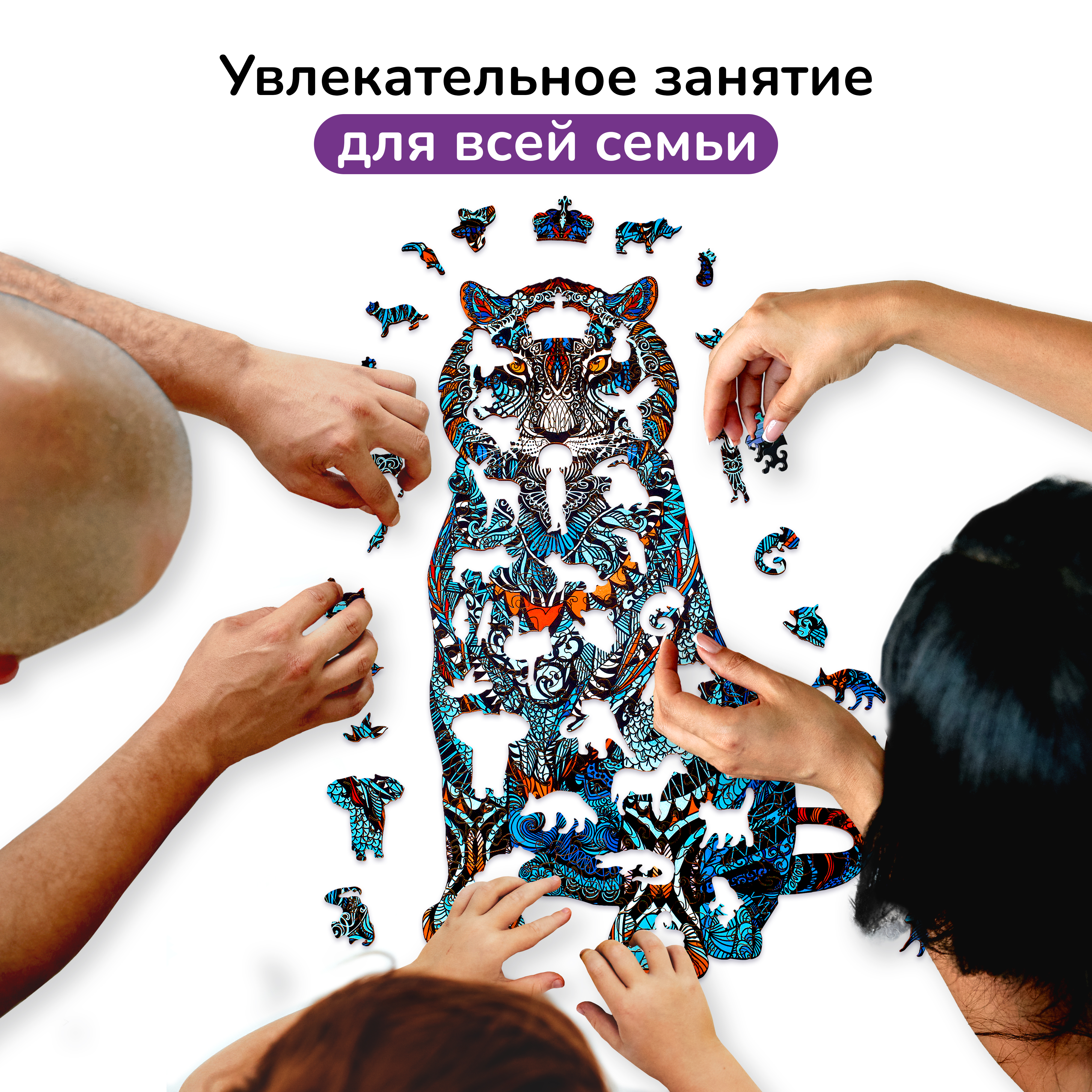 Пазл фигурный деревянный Active Puzzles Дикий тигр синий