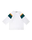 Футболка оверсайз Стен для мальчика. Модель классического кроя, с круглым вырезом, свободная, прямая по ширине. В хлопковую ткань футболки добавлен небольшой процент эластана для сохранения цвета и предотвращения деформации после стирки. Рукав реглан 3/4 с цветными вставками на ней. Универсальная и практичная футболка станет незаменимой частью весенне-летнего гардероба. Коллекция разработана так, что вещи сочетаются друг с другом и можно собрать полный образ. Например, сочетать с брюками и кроссовками из коллекции OLDOS.