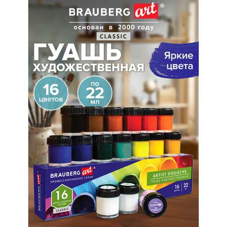 Откройте для себя мир творчества с художественной гуашью BRAUBERG ART CLASSIC! Этот набор из 16 ярких и насыщенных цветов в баночках по 22 мл идеально подходит для рисования и развивает творческие способности как у школьников, так и у профессионалов. Гуашь обладает высокой укрывистостью, быстро сохнет и сохраняет глубокий бархатисто-матовый финиш, позволяя создавать насыщенные работы любой сложности. Благодаря плотной и гладкой текстуре краски для рисования легко наносится и равномерно распределяется на поверхности. Набор гуаши художественной серии BRAUBERG ART CLASSIC станет незаменимой канцелярией для школы и студий, а также отличным выбором для любителей рисования и пальчиковых красок. Белая и другие цвета из набора обеспечивают яркость и стойкость, разбавляются водой и устойчивы к свету. Создавайте шедевры, вдохновляясь великими мастерами и развивая свой талант с этим набором красок!