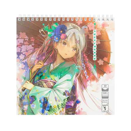 Скетчбук Prof-Press Девушка с зонтиком 40 листов на гребне плотность 150г/м2 жесткая подложка 190х190 мм
