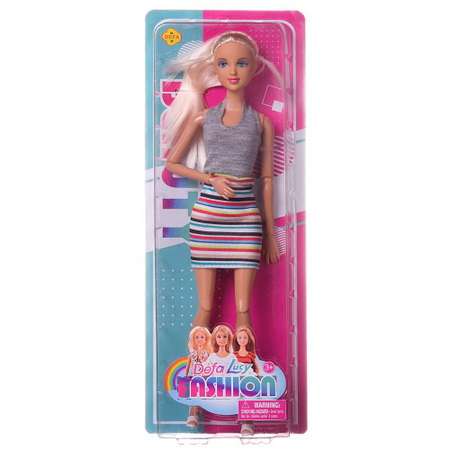 Кукла ABTOYS Модная девушка в серой кофте и радужной полосатой юбке
