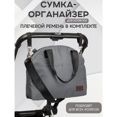 Сумка для коляски - функциональный аксессуар, который оценит каждая мама.С ним самое важное будет всегда под рукой. Сумка удобно крепится к любой ручке коляски с помощью карабинов на липучке и имеет размер 32*36*12 см. Сумка оснащена 3 карманами снаружи и 4 внутри в которые поместится все, что нужно для прогулки - от средств ухода и игрушек для малыша до личных вещей мамы. Сумка изготовлена из прочного материала с водоотталкивающим покрытием, благодаря которому аксессуар будет служить долго. Оснащена ремешком, позволяющим носить аксессуар в руках или на плече. С боку и внутри есть фиксирующая резинка для бутылочки. Мы заботимся о малышах и их родителях.