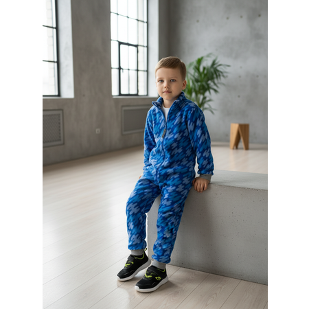 Полотно: флис SHELYS, плотность 240 г/м2 — плотный, тёплый и мягкий флис, который отлично держит тепло, не электризуется и не скатывается благодаря специальной обработке. Такой материал приятен к телу, не вызывает ощущения «синтетики» и подходит для ежедневной носки и в качестве поддёвы.Особенности модели: флисовый комбинезон с прямой молнией-застёжкой спереди, воротником-стойкой и защитным клапаном на воротнике, который предохраняет подбородок от защемления молнией. На рукавах и штанинах — трикотажные манжеты из рибаны (100% хлопок), которые мягко фиксируют длину и защищают от продувания; модель выполнена в приятной цветовой гамме с рисунком и выглядит ярко и аккуратно на ребёнке.