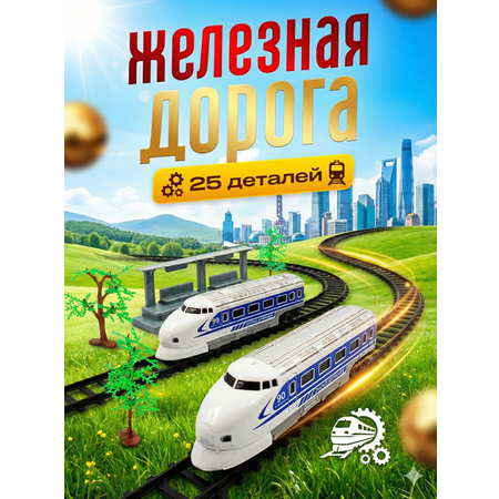Железная дорога со световыми и звуковыми эффектами станет отличным подарком на новый год и день рождения как для ребёнка, так и для взрослого. Играя с набором, ребенок сможет представлять себя водителем локомотива. Игрушка по-настоящему завораживает, ведь небольшой поезд выглядит совсем как настоящий. Малыши смогут буквально часами наблюдать за тем, как локомотив везет вагончики по рельсовому полотну. Несмотря на то, что железные дороги по традиции приобретают мальчикам, такая интересная игрушка заинтересует и многих девочек. Электромеханическая детская железная дорога с поездом «Экспресс» создана с высокой детализацией. Размер железнодорожного полотна: 344 см (варианты сборки дороги представлены на коробке). Комплектация 25 деталей: - 12 частей рельс; - 2 локомотива; - 2 дерева, - 1 жд станция, - комплект наклеек, - комплект аксессуаров (знаки, шлагбаум). Поезд механизирован, работает от батареек. Для работы требуются: 2 батарейки типа АА (не идут в комплекте). Материал: ABS-пластик. Возраст: 3+.