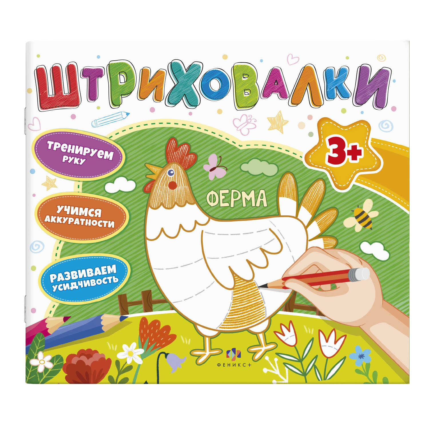 Книжка для раскрашивания. Серия "Штриховалки" /200х230 мм, 10 л., блок - офсет 120 г/м2, полноцветная печать, обл - мелованная бумага 200 г/м², Уф-лак, мягкий переплёт (2 скобы),