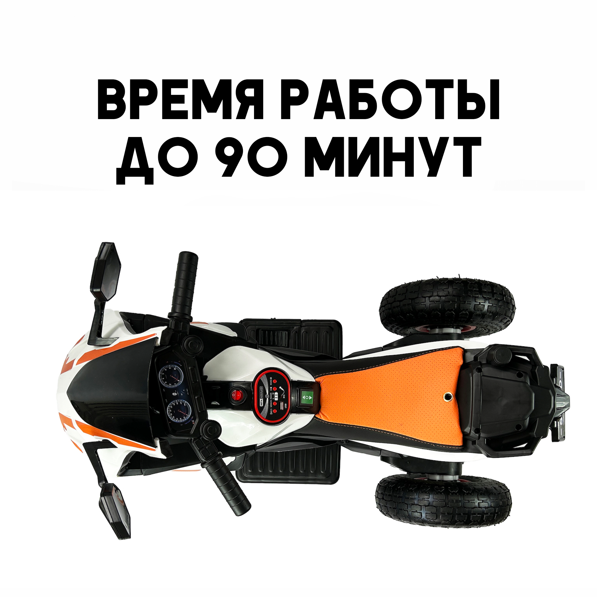 Детский электромотоцикл это отличный подарок для ребенка от года до четырех лет. Трицикл поставляется с двумя моторами, разгоняется до четырех километров в час, полного заряда хватает на час прогулки. Мягкое сиденье сделанное из экокожи легко протереть и удобно для длительной прогулки. Колеса резиновые, надувные, с глубоким протектором. Не будут греметь если ехать по асфальту. В комплекте идет магнитола с стандартными мелодиями, AUX раъемом, Bluetooth и гудком . Передние фары светятся красным. Индикатор заряда подскажет, когда поставить мотоцикл на зарядку.