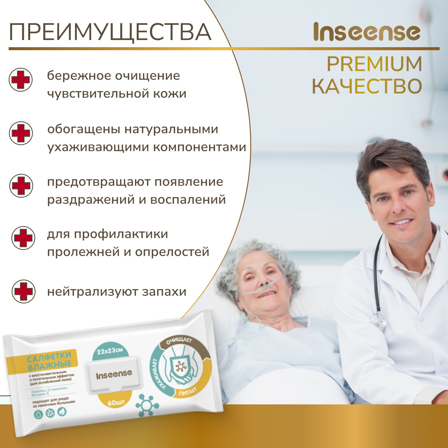 Салфетки влажные INSEENSE для ухода за лежачими больными с ланолином 60шт