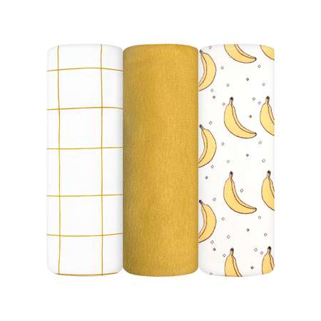 Комплект пелёнок Mjolk Бананы/Mustard/Клетка сет из 3х штук 120x85