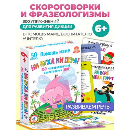 Она подойдет как для мальчиков, так и для девочек. На каждой карточке представлены устойчивые выражения русского языка и скороговорки, которые помогут вашему ребенку тренироваться правильно и четко произносить слова.
