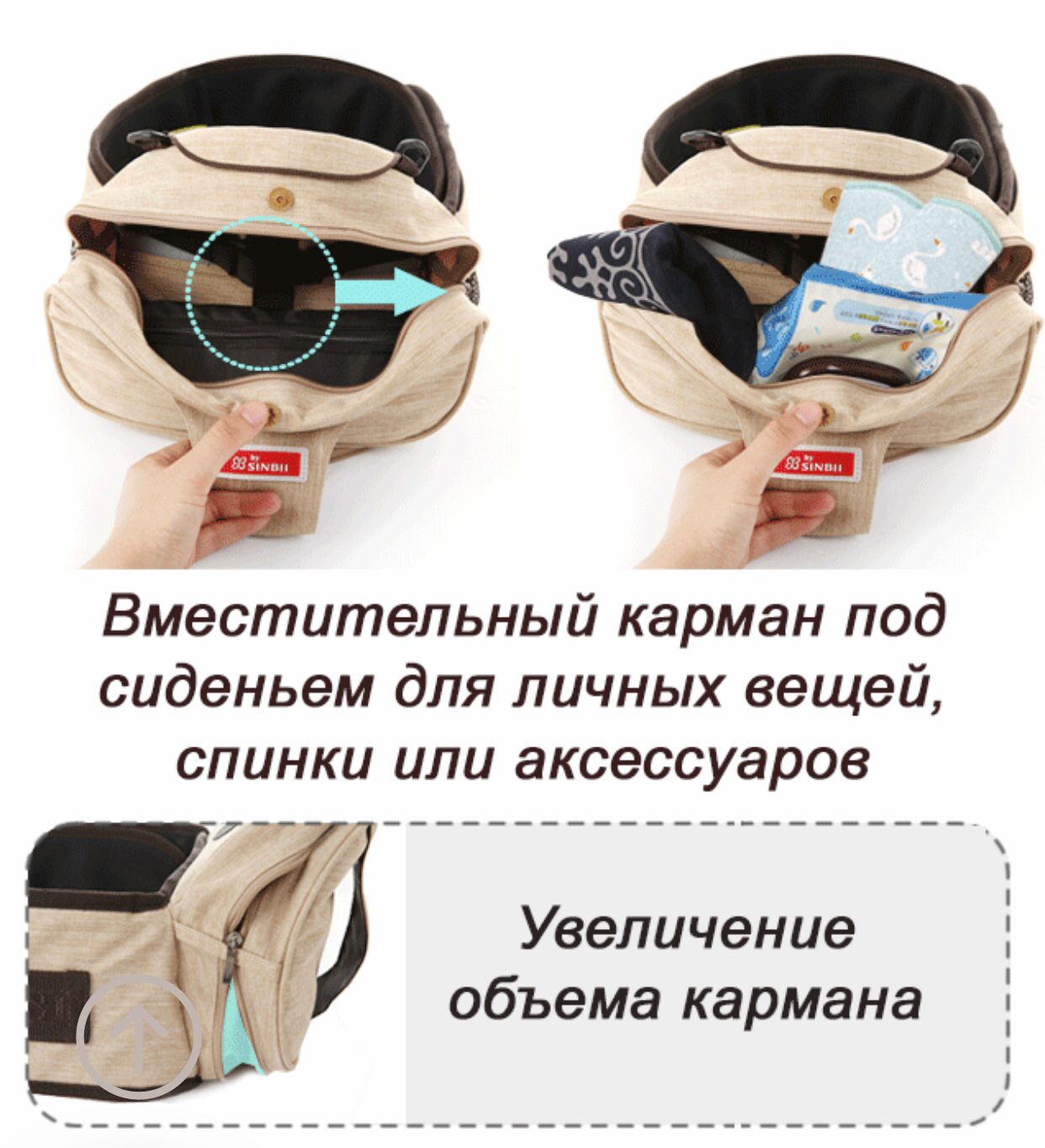 - В комплекте сумка для переноски хипсита (спрятана под молнию в карман под сиденье).