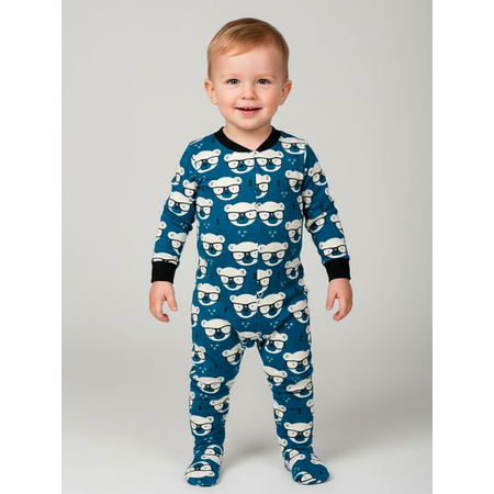 Детский нательный комбинезон на кнопках с длинными рукавами и закрытыми ножками (лапками) для новорожденных, малышей и грудничков. Данная модель универсальна и может использоваться как наряд для прогулки, пижама для сна или домашняя одежда для повседневной носки. Комбинезон оформлен принтом. На рукавах изделия эластичные манжеты, не стягивающие запястья. Сделано в России.