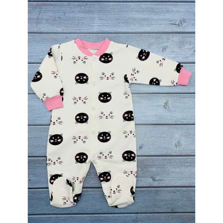 Детский нательный комбинезон на кнопках с длинными рукавами и закрытыми ножками (лапками) для новорожденных, малышей и грудничков. Данная модель универсальна и может использоваться как наряд для прогулки, пижама для сна или домашняя одежда для повседневной носки. Комбинезон оформлен принтом. На рукавах изделия эластичные манжеты, не стягивающие запястья. Сделано в России.