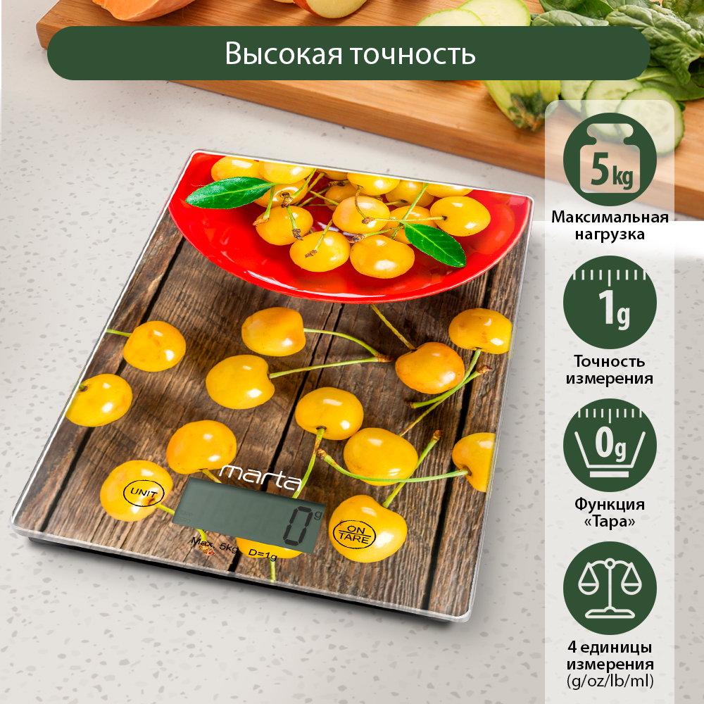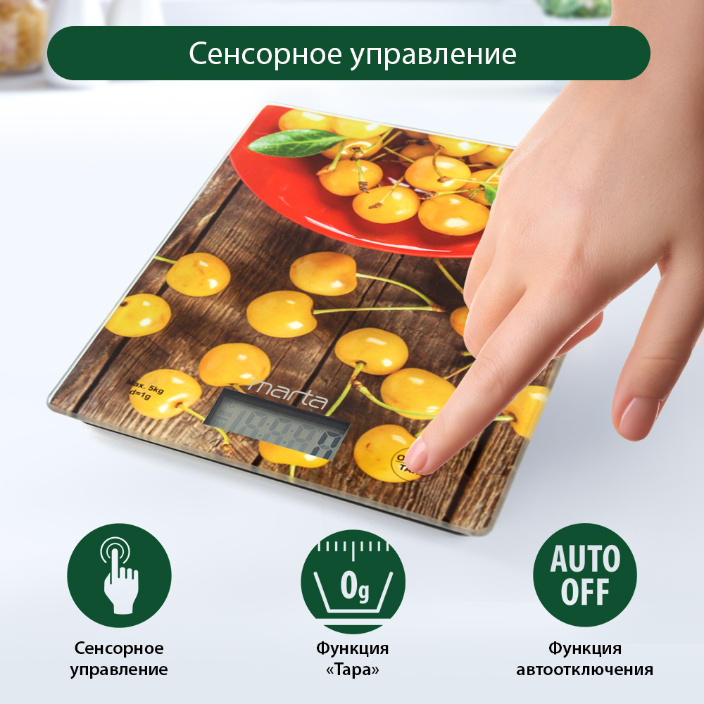 Весы кухонные MARTA MT-1634 сенсор встроенный термометр