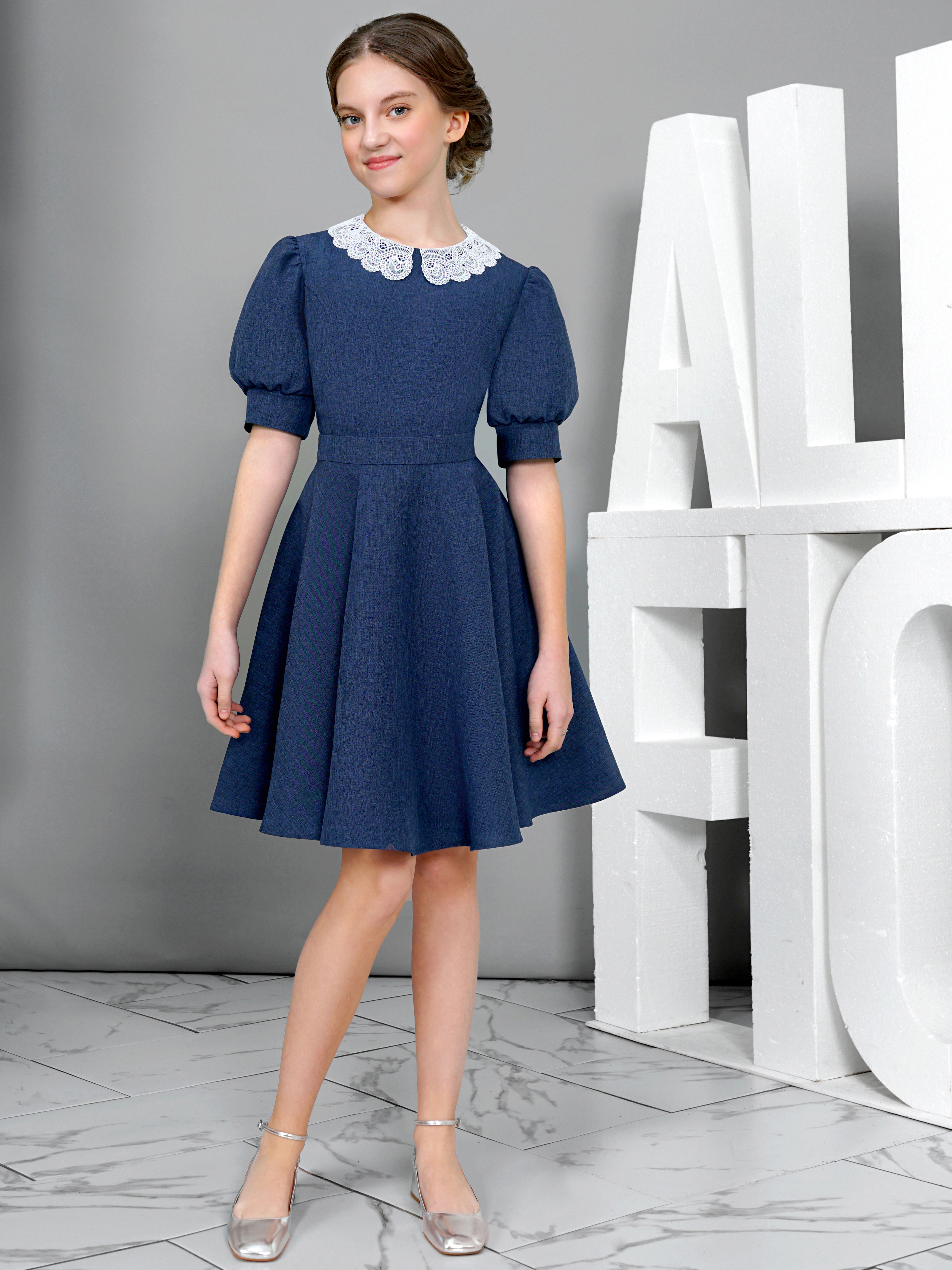 Красивое нарядное школьное платье Вика Sc для девочек со съемным воротником на подкладке по лифу от бренда Alisia Fiori. Выполнено из технологичной дышащей несминаемой плательно-костюмной ткани с добавлением хлопка. Ткань износостойкая, хорошо сохраняет форму, качество и цвет в процессе эксплуатации. Особую нарядность и женственность изделию придают струящаяся юбка-солнце, подчеркнутая линия талии и съемный белый кружевной воротник. Воротник пришит к изделию на машинах ручного стежка и легко снимается. Рукав пышный аккуратный, не доходящий до линии локтя, на манжете с приподнятой головкой по плечевому поясу. Для удобства эксплуатации в центральном шве спинки предусмотрена застежка-молния, переходящая за линию талии, благодаря чему изделие можно одевать через ноги. Это очень удобно, так как не портит прическу. Ширина изделия может регулироваться за счет полупоясов, выходящих из боковых швов и завязывающихся сзади на бант. Лиф платья на подкладке из хлопковой ткани. Платье гармонично вписывается в гардероб современного ребенка и подростка, сочетаясь с любой обувью и предметами одежды из базового и альтернативных гардеробов. Отлично подходит к фартуку Ната Sc арт. Уход. Деликатная стирка в стиральной машине при температуре 30-40 градусов или ручная стирка. Сушить в вертикальном положении. Глажение производить с изнаночной стороны.