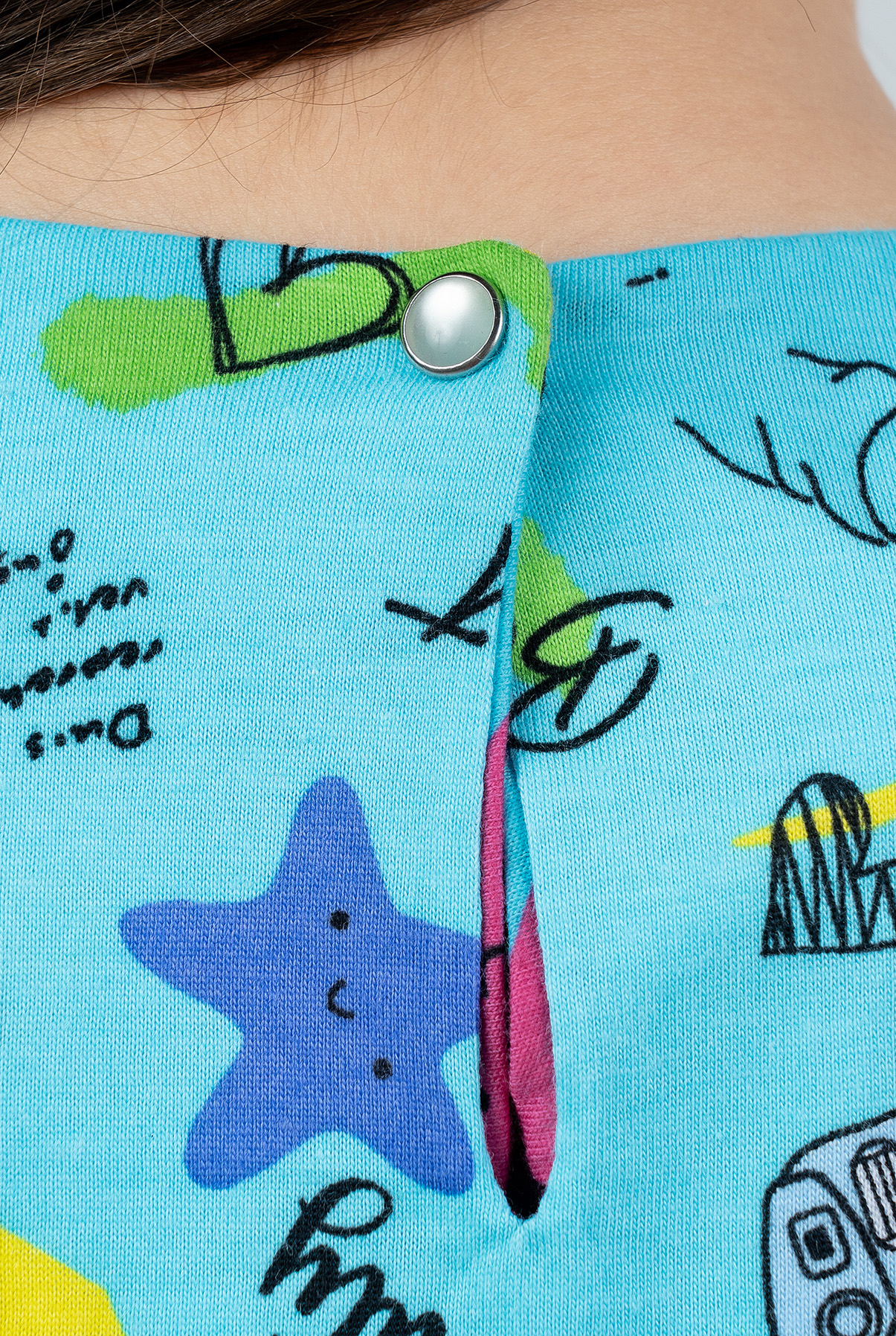 Платье для девочки "Роза" от бренда 5+ выполнено из мягкого, приятного к телу трикотажного полотна - кулирка, в составе которой 100 % хлопок. Натуральный состав материала делает платье отличным вариантом на жаркое время года. Нарядное платье свободного кроя, с коротким втачным рукавом, округлой горловиной и объемной 2-х ярусной юбкой отлично смотрится на девочке любого размера и роста. На спинке расположена застежка на одну декоративную кнопку-жемчужинку. Яркая расцветка делает платье для девочки выделяющимся на фоне других и создаёт нежный и романтичный образ для маленьких модниц. Домашнее трикотажное платье подойдет для летних прогулок. Платье прекрасно сидит и стройнит. Летнее стильное платье для девочек выполнено в нескольких модных расцветках сезона с нежным цветочным рисунком. Многообразие расцветок позволит вписать данную модель в любой базовый гардероб, немного аксессуаров и модный стильный образ готов. Бренд 5+ заботиться о вас и предлагает разнообразие стилей, фасонов и дизайнов, которые помогают выделиться и создать стильный образ для девочек.