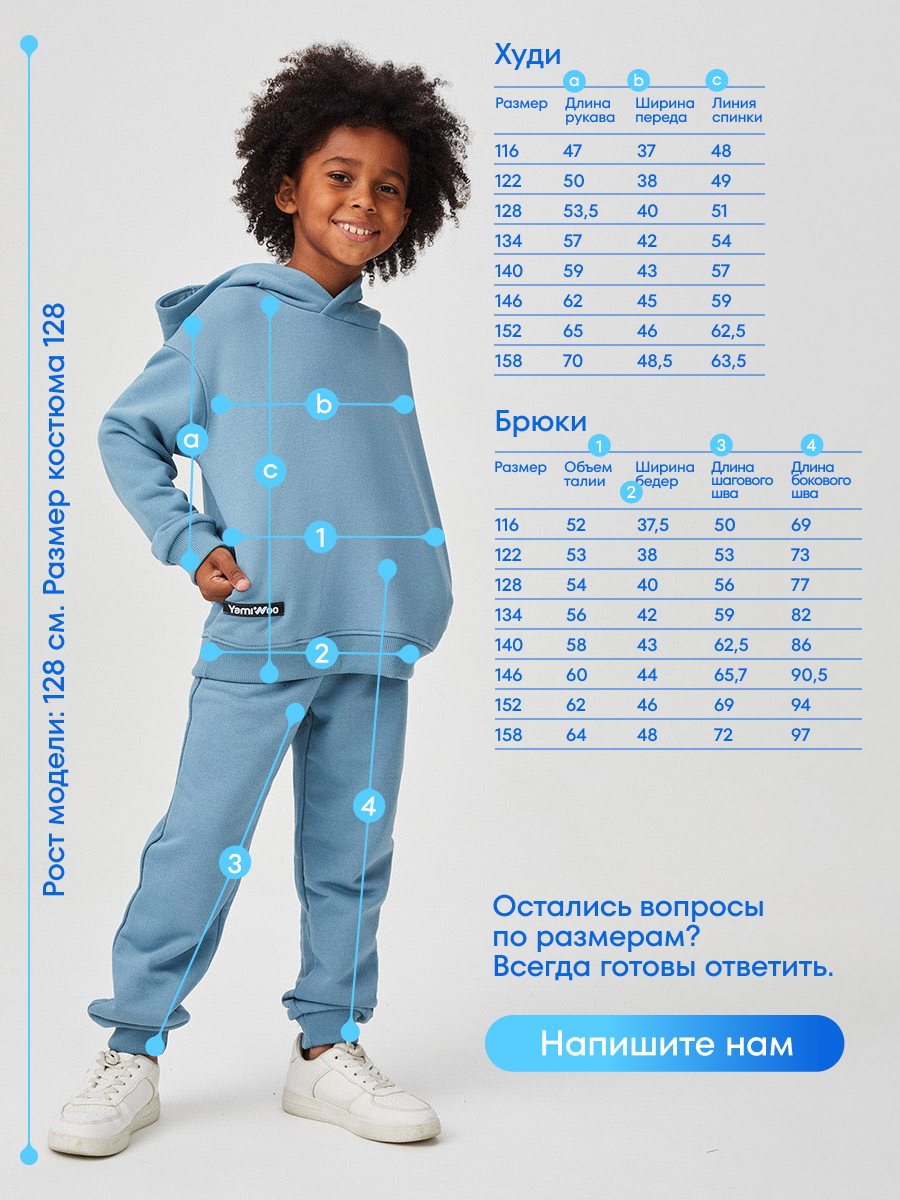 Спортивный костюм для мальчиков модной яркой расцветки. В комплект спортивного костюма на мальчика входит: свободная худи с капюшоном и карманами, брюки джоггеры спортивного стиля на резинке. Костюм выполнен из качественного трикотажа , который отлично держит форму, не расползается после стирок и не теряет насыщенности цвета. Благодаря современным технологиям костюм не теряет цвет и радует даже после долгой носки. Костюм выполнен из премиального футера 3-х нитки без начеса, материал дышащий с преимущественным содержанием хлопка. Трикотажный костюм без начеса облегченный, отлично подойдет для прогулок в теплую погоду и для повседневной носки круглый год, для спорта и фитнеса, а также для праздничных выходов. Удобная комфортная модель: костюм легкий без начеса, двойной глубокий капюшон с подкладом, удлиненная модель оверсайз худи закрывает поясницу ребенка. Свободные спортивные штаны на резинке с двойными боковыми швами. Качественно и надежно прошиты все детали комплекта. Спортивный костюм идеален для прогулок и прохладным летом и теплой весной, также осенью и весной можно носить в комплекте с утепленными жилетками. Штаны можно отлично сочетать с футболками, другими худи и толстовками. А худи отлично подойдет к любым джинсам и шортам. Стильный оригинальный дизайн костюма добавит настроение и свежести образу. Костюм для мальчиков представлен в двух расцветках: яркий салатовый и спокойный джинс. Костюм представлен в размерном ряду от 116 до 158. Для подбора нужного размера можно воспользоваться размерной таблицей, представленной в карточке товара. Одежда произведена в России с соблюдением всех правил технологического процесса. Товар сертифицирован. ВНИМАНИЕ: Изделие выполнено из трикотажа высшего качества "компакт пенье". Деликатная стирка 30 градусов..