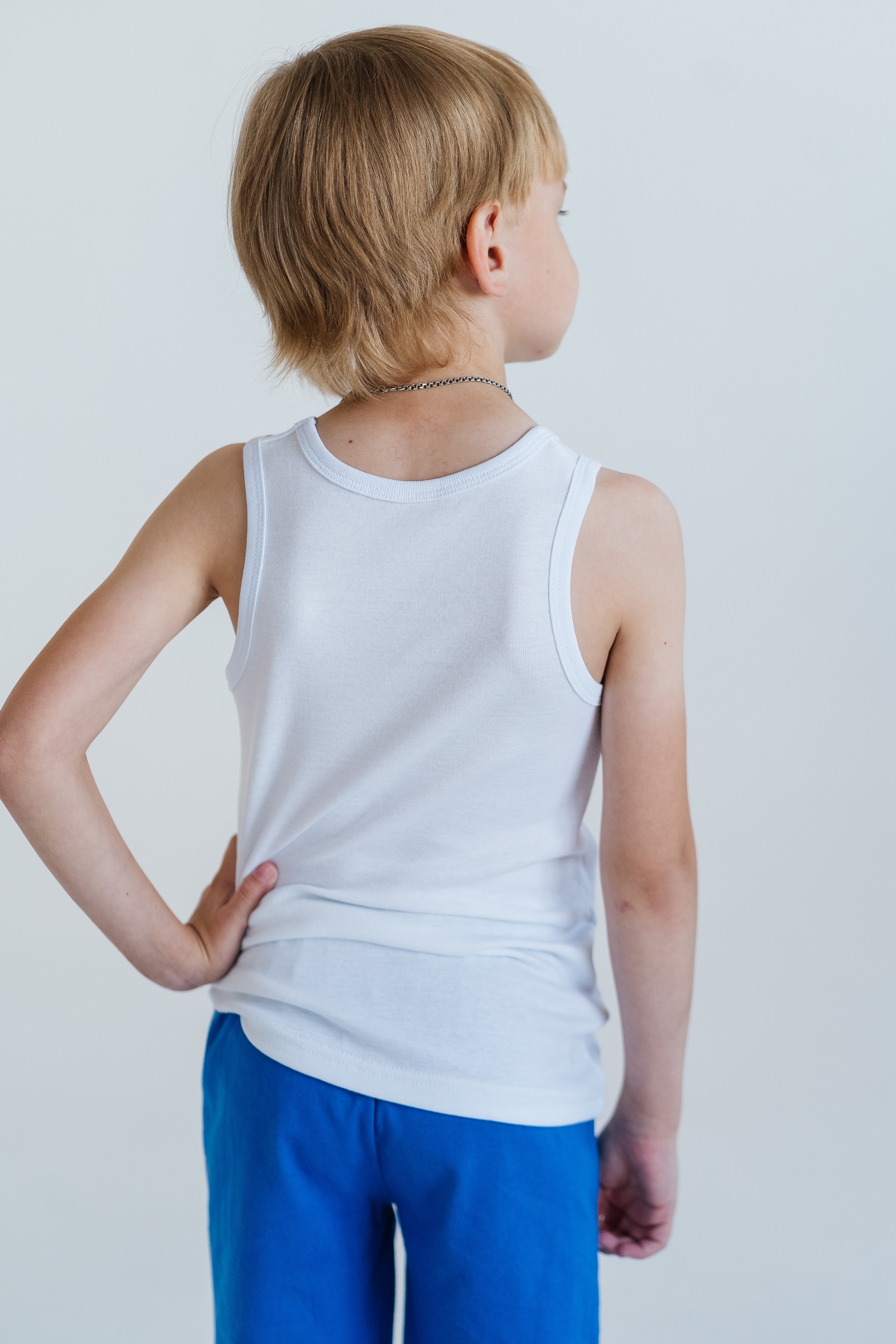 Майка бельевая для мальчика комплект 3 шт., изготовленные из высококачественного трикотажного полотна – рибана, состав 100% хлопок. Бельевая майка с открытыми плечами, широкими бретелями и классической горловиной, не сковывает движения и незаметна под одеждой. Благодаря натуральному составу изделие не раздражает кожу ребенка и обеспечивает комфорт и уют в течение всего дня. В комплект входят синяя, голубая и белая маечки. Набор прекрасно подойдет для домашней одежды или для сна. Хлопковые маечки из дышащего текстиля можно использовать для активного отдыха и на уроках физкультуры. Трендовые летние расцветки сделают майки любимой повседневной одеждой вашего ребенка. Удобные маечки из устойчивого к износу материала – практичное решение для маленьких детишек и мальчишек постарше. Детская одежда UNIK - с заботой о вашем ребенке.