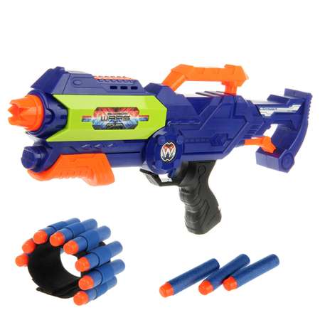 В комплекте игрушка оружие, 10 патронов и обойма на резинке с отделениями для патронов.