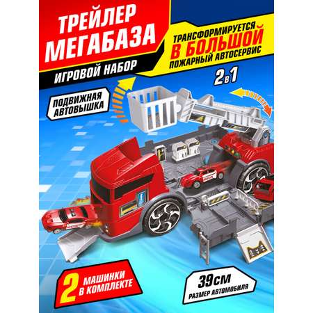 Набор-трансформер 2 в 1: трейлер и большая базаКрасочные наклейки, маленькие машинки и аксессуары в набореМножество подвижных элементовРазвитие фантазии и интереса к техникеХарактеристики:
