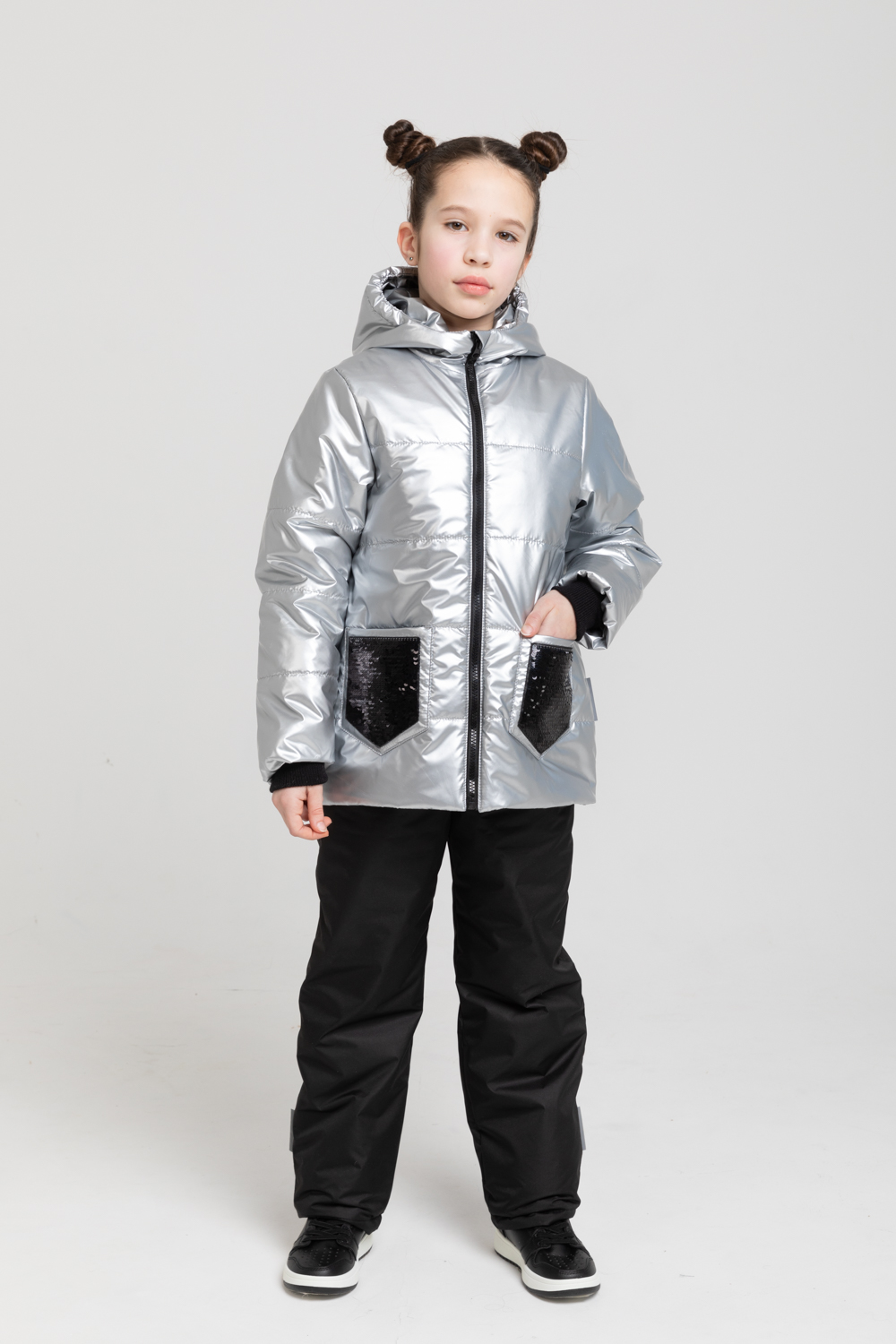 Демисезонный костюм на девочку. Комплект из куртки и полукомбинезона. Детские куртки выполнены из ткани Премиум Лаке с водонепроницаемой и ветрозащитной пропиткой. На куртке есть два прорезных кармашка. Низ куртки утягивется эластичной резинкой. Три расцветки курток украшена декоративными пришивными лентами, а еще на двух курточках на кармашках пришиты двусторонние паетки, за счет чего кармашки можно сделать либо серебристыми либо черными. Так же на спинке двух курточек пришита аппликация в виде кошек. Ткань полукомбинезона-таслан с PU покрытием, также-водонепроницаемость и ветрозащита. Утеплитель куртки холлофан 150гм2, полукомбинезон-100гм2. Подкладка курточки грудь и спинка-поларфлис, ручки-гладкая таффета. Подкладка полукомбинезона гладкая таффета. Внутри рукава трикотажная манжета. Капюшон несъемный, с высоким горлышком, что позволяет не брать с собой шарфик). Защита подбородка от укуса молнии. Полукомбинезон высокий, на эластичной резинке, регулируется фастексами. В темное время суток на комплекте предусмотрены светоотражающие элементы. Температурный режим непромокаемого костюма от 0 до +15 t. Шьем с любовью к вашим деткам, как к своим. Производство находится в СПб. Фабрика Горицкой.