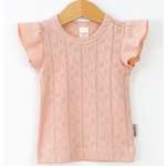 Футболка с крылышками для девочки, выполнена из нежной ажурной рибаны с изысканным принтом, 100% хлопок. Застежка на кнопках по плечу.