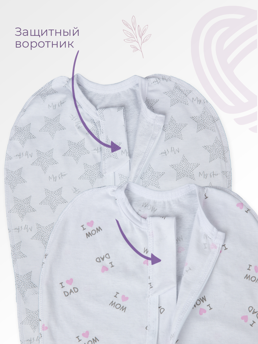 Крепкий сон младенца – это мечта каждого родителя. Свободное пеленание не позволяет малышу будить себя ручками при вздрагивании, но оставляет свободу движения. Не нужно переживать, что кроха раскроется и замёрзнет. А малыш сможет менять положение без риска распеленаться. Покупая комплект из двух коконов, вы обеспечите себя существенной частью одежды для первых месяцев ребёнка, обойдясь без распашонок, ползунков, носочков и конвертиков. Напомним также, что маленькие дети редко любят одеваться.