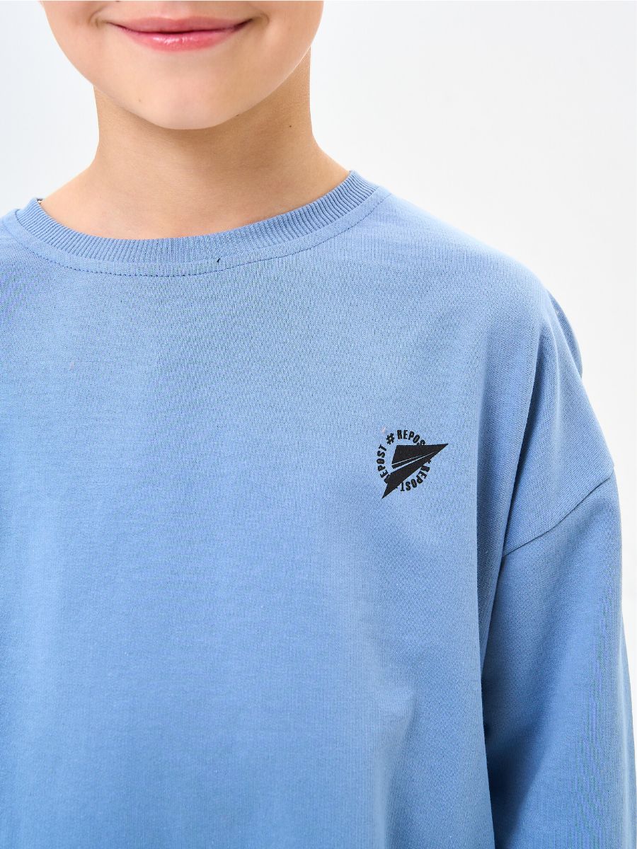 Стильный удобный свитшот для подростков модели оверсайз с качественным принтом Repost. Комфортный детский свитшот имеет свободный крой, спущенную линию плеча, манжеты на руках и поясе. Нейтральные цвета делают модель идеальной базовой вещью в гардеробе. Универсальная спортивная толстовка сочетается с шортами из нашей коллекции. Выполненная из 100% хлопка толстовка для девочки и кофта для мальчика прекрасный выбор на каждый день. Ткань-футер двухнитка без начеса делает свитшот с принтом мягким и приятным. Идеальный состав для ребёнка - детская олимпийка не растянется и не сядет, легко стирается, не скатывается и не выцветает. За простоту в уходе ее любят мамы. Поверьте, ребёнок не захочет снимать свитшот и отправится в детский сад, в школу, на прогулку или в гости в нем. Стильный свитшот оверсайз для девочки и кофта для мальчика рассчитан для тёплой осени/весны и прохладного лета. Худи для подростков – это универсальная толстовка детская и свитшот для девочки. Модная кофта сядет на любую фигуру, подойдёт как мальчику, так и девочке. Модные толстовки для девочек и свитшот для мальчика сочеаются с шортами и брюками из нашей коллекции.
