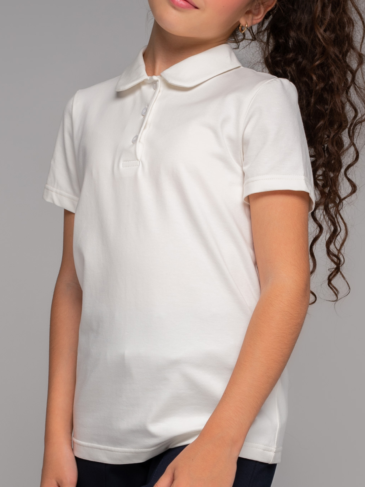 Блузка для девочки с коротким рукавом и отложным воротничком выполнена из мягкого трикотажа кулирка. Поло в школу для девочки из хлопка с эластаном слегка тянется, приятная на ощупь и позволяет коже дышать, выгодно подчеркивая фигуру.