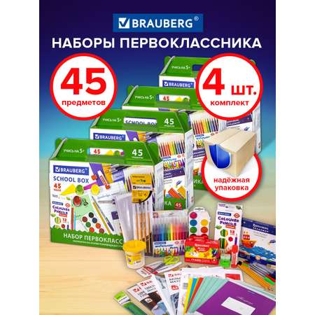 Набор первоклассника Brauberg комплект 4 шт в подарочной коробке 45 предметов