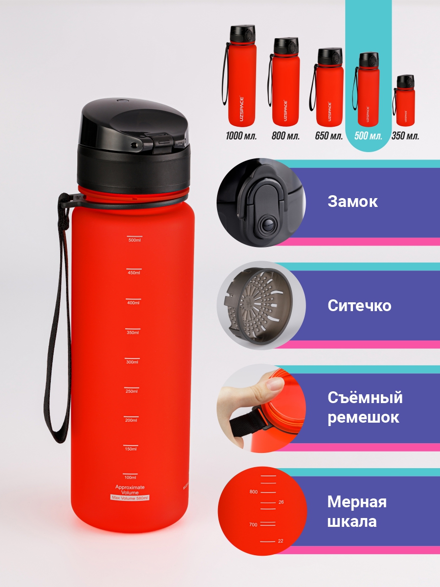Бутылка для воды 500 мл UZSPACE 3026 алый