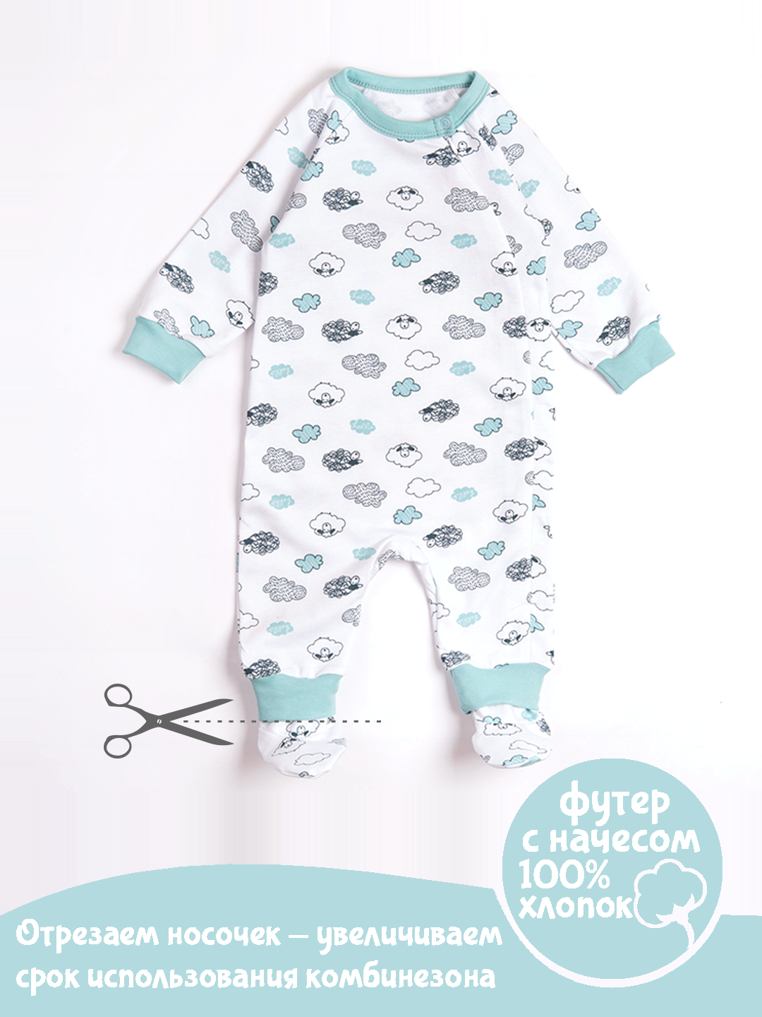 Комбинезон для малыша выполнен из мягкого приятного к телу трикотажа. Модель с длинным рукавом, на ножках закрытый носочек, который дополнительно снабжен манжетой. Эта модель прослужит намного дольше, чем другие модели, потому что по мере роста ребенка лапку на штанишках можно отрезать и внизу останется только манжета.