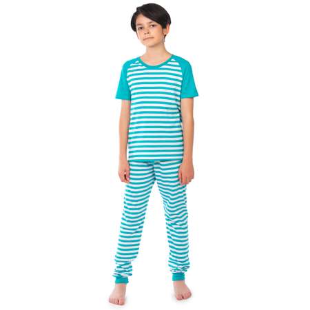 Пижама для мальчика N.O.A. футболка и брюки в полоску красивого сочетания бирюзового цвета