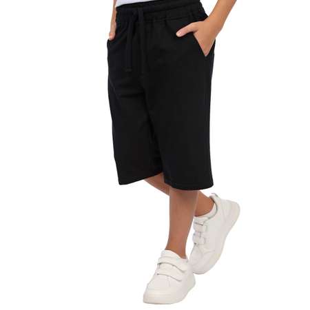 Шорты для мальчика черные трикотажные однотонные свободного прямого кроя ниже колен с карманами выполнена из качественного трикотажа футер без начеса (петельчатая изнанка) Размер на модели 146 Рост модели на фото 141 см