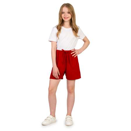 Шорты для девочки трикотажные однотонного цвета короткие спортивные с поясом на резинке и завязках шнурках, c высокой посадкой. БЕЗ КАРМАНОВ