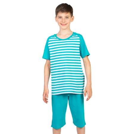 Пижама для мальчика с удлиненными шортами красивого бирюзового цвета - в полоску