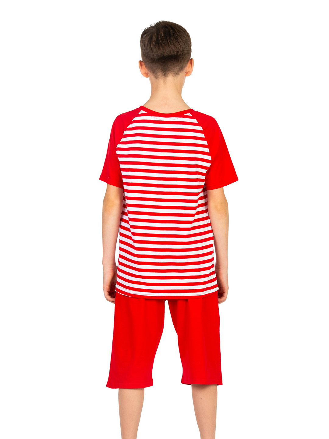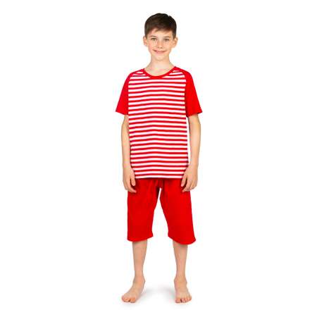 Пижама для мальчика с удлиненными шортами красивого красного цвета - в полоску