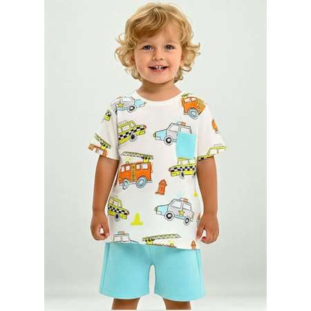 Комплект футболка и шорты для мальчика ЦВЕТ : ФУТБОЛКА МОЛОЧНЫЙ С ПРИНТОМ,ШОРТЫ СВ.ГОЛУБОЙ . Футболка выполнена из экологичной ХЛОПКОВОЙ ткани , свободного кроя, вырез горловины округлый, рукав короткий, на груди кармашек.Шорты, ткань ВАФЕЛЬНОЕ ПОЛОТНО средней плотности,легкая, приятная к телу, хорошо пропускает воздух. На пояске имеется резинка и шнурок.Есть ширинка-обманка с пуговицами. Футболка и шорты для девочки легкие, одежда для новорожденных приятная к телу, комплект летний для девочек хорошо пропускает воздух. Натуральный хлопок футболки и шорт для малышей обеспечит комфорт ребенку во время летних прогулок или носки дома, в детском саду. Комплект футболка и шорты прекрасный подарок.