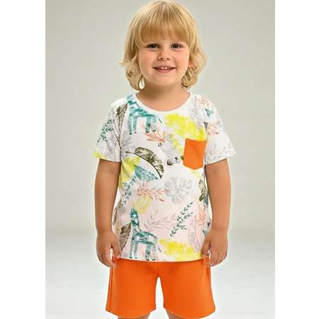 Комплект футболка и шорты для мальчика ЦВЕТ : ФУТБОЛКА МОЛОЧНЫЙ С ПРИНТОМ,ШОРТЫ ОРАНЖЕВЫЙ . Футболка выполнена из экологичной ХЛОПКОВОЙ ткани , свободного кроя, вырез горловины округлый, рукав короткий, на груди кармашек.Шорты, ткань ВАФЕЛЬНОЕ ПОЛОТНО средней плотности,легкая, приятная к телу, хорошо пропускает воздух. На пояске имеется резинка и шнурок.Есть ширинка-обманка с пуговицами. Футболка и шорты для девочки легкие, одежда для новорожденных приятная к телу, комплект летний для девочек хорошо пропускает воздух. Натуральный хлопок футболки и шорт для малышей обеспечит комфорт ребенку во время летних прогулок или носки дома, в детском саду. Комплект футболка и шорты прекрасный подарок.