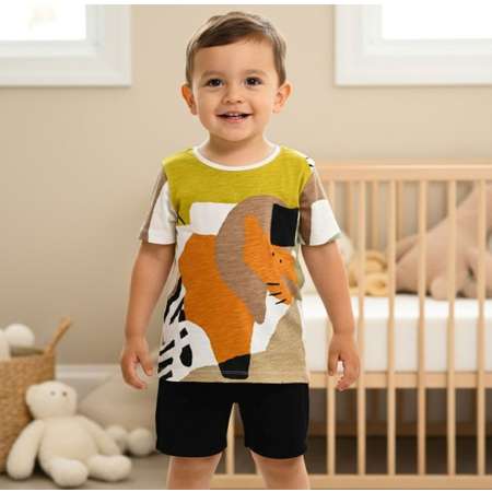 Комплект футболка и шорты для мальчика ЦВЕТ : ФУТБОЛКА МОЛОЧНЫЙ С ПРИНТОМ,ШОРТЫ ЧЁРНЫЙ . Летний комплект для малышей: Футболка (хлопок) и Шорты (вафельное полотно) — Сделано в Турции Этот стильный костюм — идеальный баланс между современным дизайном и природной чистотой. Мы объединили мягкость классического хлопка детского костюма и необычную структуру вафельного хлопкового полотна, чтобы создать универсальный образ для мальчиков . Легкая футболка свободного кроя с округлым вырезом и декоративным кармашком на груди. Универсальный фасон, который не сковывает движений. Шорты из вафельного полотна (пике) средней плотности. Эта ткань не только эффектно выглядит, но и создает микрорельеф, который позволяет воздуху лучше циркулировать — кожа ребенка всегда будет сухой. Эластичная резинка дополнена шнурком для точной регулировки по талии, а декоративная ширинка-обманка с пуговицами добавляет образу «взрослого» стиля. Натуральные ткани комплекта футболка и шорты для малыша турецкого производства известны своей долговечностью, мягкостью и экологичностью. Легкие дышащие материалы одежды для новорожденных Турция защитят от перегрева. Комфортный крой летнего костюма для мальчиков позволяет ребенку легко переодеваться самостоятельно. Необычная фактура шорт делает этот комплект фотогеничным и модным. Качественная одежда для новорожденных и малышей — это всегда нужный и приятный подарок .