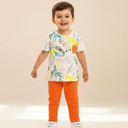 ЦВЕТ : ФУТБОЛКА МОЛОЧНЫЙ С ПРИНТОМ,ШТАНЫ ОРАНЖЕВЫЙ . Футболка с брюками для мальчика выполнена из экологичной ХЛОПКОВОЙ ТРИКОТАЖНОЙ ткани . Футболка свободного кроя.Одежда для девочек имеет вырез горловины округлый, рукав короткий, на груди кармашек.Штаны С КАРМАНАМИ, ткань ХЛОПКОВОЕ ВАФЕЛЬНОЕ ПОЛОТНО средней плотности. Ткань костюма для девочек легкая, приятная к телу, хорошо пропускает воздух. На пояске имеется резинка и шнурок. Штанишки зауженные. Есть ширинка-обманка с пуговицами.Натуральный хлопок комплект футболка с штанами для мальчика обеспечит комфорт ребенку во время летних прогулок . Костюм для мальчика летний для носки дома, в детском саду. Футболка и брюки прекрасный подарок.Одежда для новорожденных.