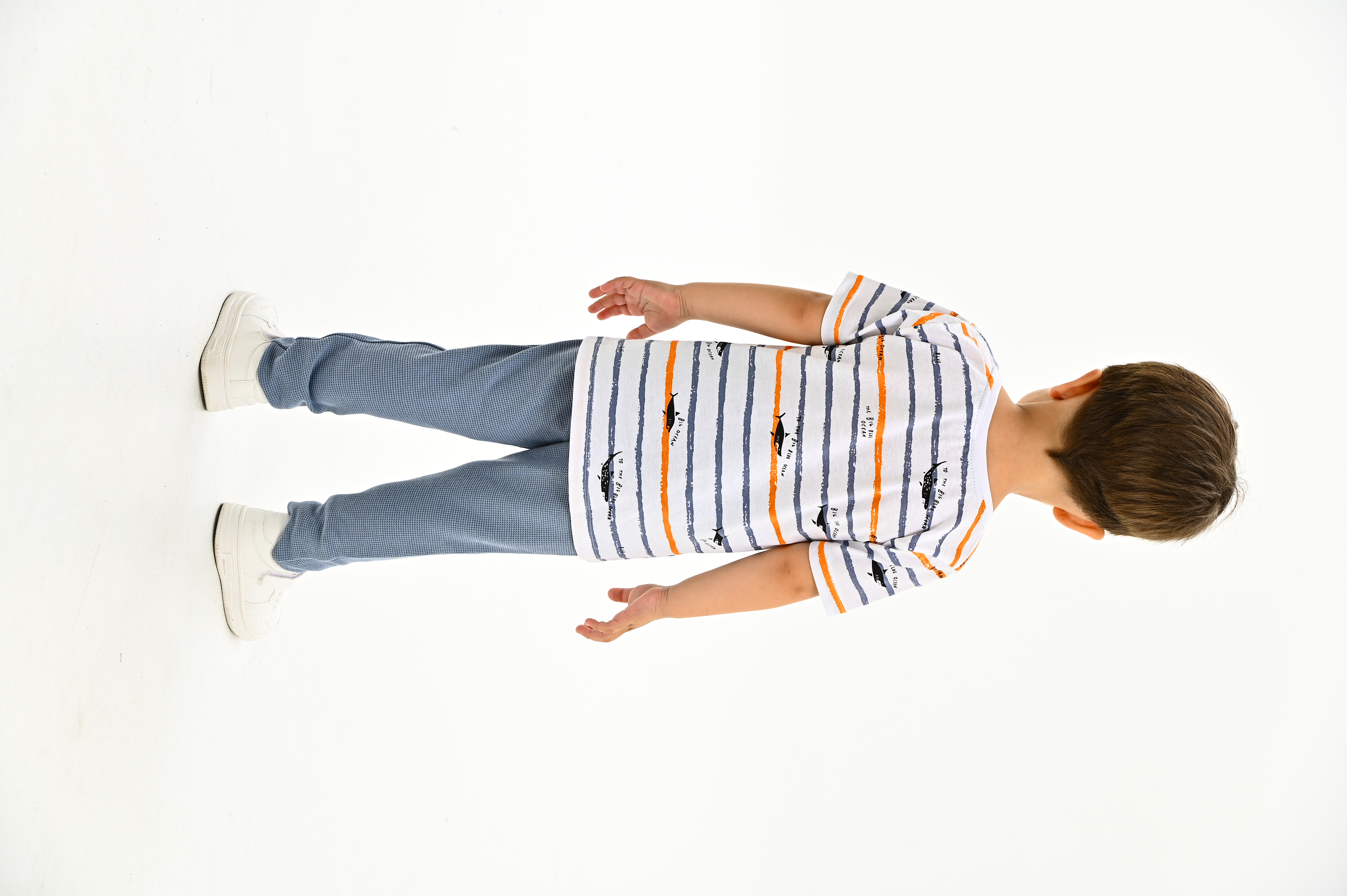 Костюм для мальчика ЦВЕТ : ФУТБОЛКА МОЛОЧНЫЙ С ПРИНТОМ,ШТАНЫ ГОЛУБОЙ . Футболка с брюками для мальчика выполнена из экологичной ХЛОПКОВОЙ ТРИКОТАЖНОЙ ткани . Футболка свободного кроя.Одежда для девочек имеет вырез горловины округлый, рукав короткий, на груди кармашек.Штаны С КАРМАНАМИ, ткань ХЛОПКОВОЕ ВАФЕЛЬНОЕ ПОЛОТНО средней плотности. Ткань костюма для девочек легкая, приятная к телу, хорошо пропускает воздух. На пояске имеется резинка и шнурок. Штанишки зауженные. Есть ширинка-обманка с пуговицами.Натуральный хлопок комплект футболка с штанами для мальчика обеспечит комфорт ребенку во время летних прогулок . Костюм для мальчика летний для носки дома, в детском саду. Футболка и брюки прекрасный подарок.Одежда для новорожденных.