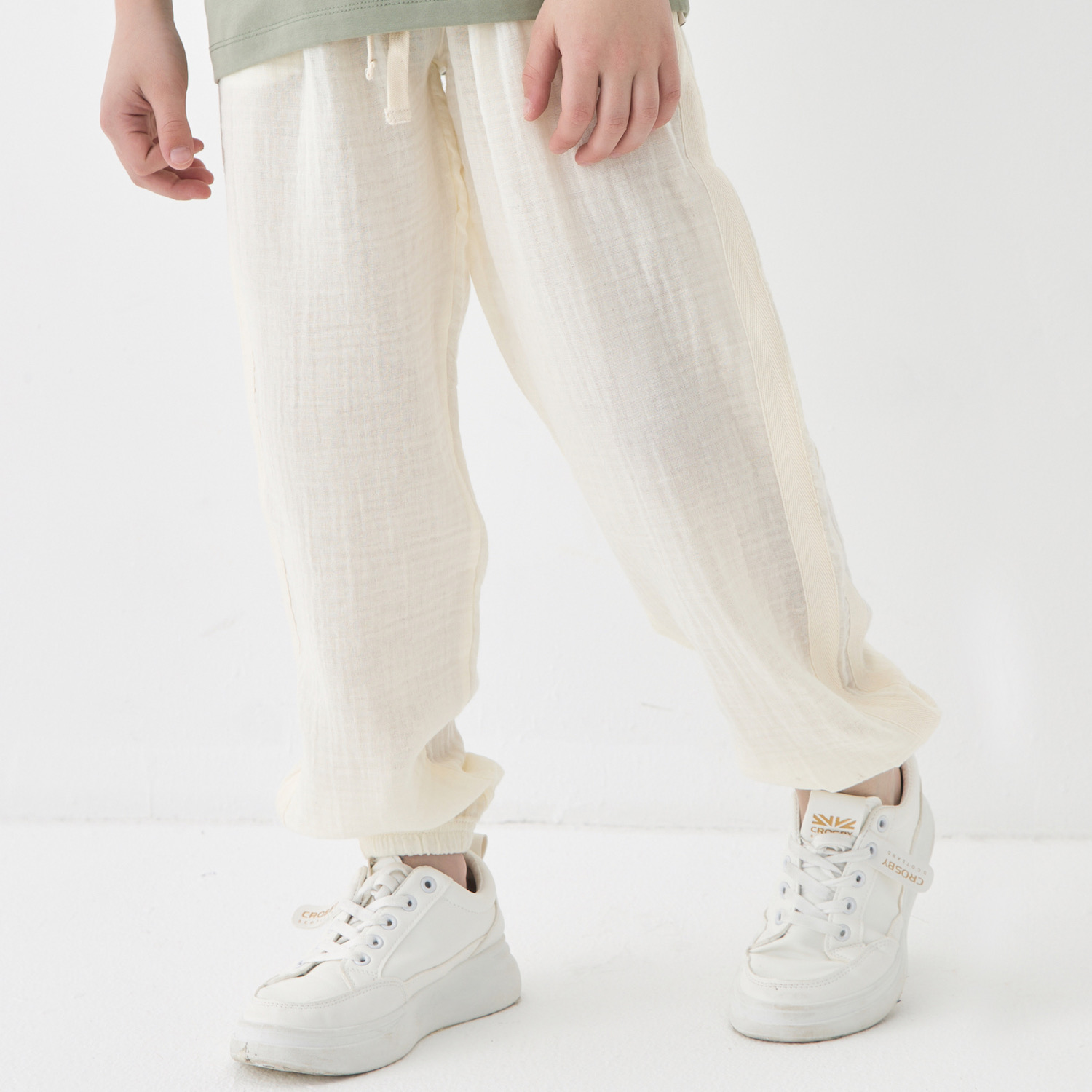 Муслиновые брюки Kogankids джоггеры для детей выполнены из высококачественного (100% хлопок) полотна. Детские брюки для девочки из муслина однотонные потрясающе лёгкие и одновременно прочные не сковывают движений и не ощущаются на теле. Брюки детские для мальчика муслин имеют модный свободный крой, резинку в талии и манжеты для удобной посадки. Джоггеры для девочки однотонные из органического хлопка универсальны, они подойдут как одежда для дома и прогулок, для спорта и тренировок, для фитнеса и бега, для танцев и йоги, для хип хоп танцев, для школы и в детский сад. Штаны для мальчика муслиновые долговечны и износостойки, после стирок становятся мягче.Повседневные муслиновые брюки для девочки мягкие, простые в уходе. Брюки для мальчика а завязках из муслина не нужно гладить. Муслиновые штаны для детей идеально подходят для хип хоп танцев. Ребенку в них очень комфортно.Отличное решение надевать муслиновые штаны в детский садик. В них можно бегать, прыгать, играть в подвижные игры с комфортом. Брючки из муслина детские не стесняют движений, мягкая резинка на поясе не сдавливает животик, при необходимости, поясок можно затянуть и завязать шнуром. Благодаря комфортным манжетам, можно подобрать штаны по размеру или на вырост.