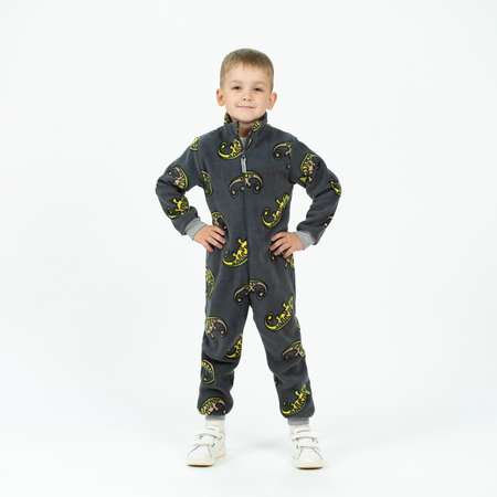Особенности модели: Флисовый комбинезон. Прямая молния-застёжка спереди. Трикотажные манжеты на рукавах и на штанинах (рибана, 100% хлопок). Воротник-стойка. Защитный клапан на воротнике. Приятная цветовая гамма с рисунком.