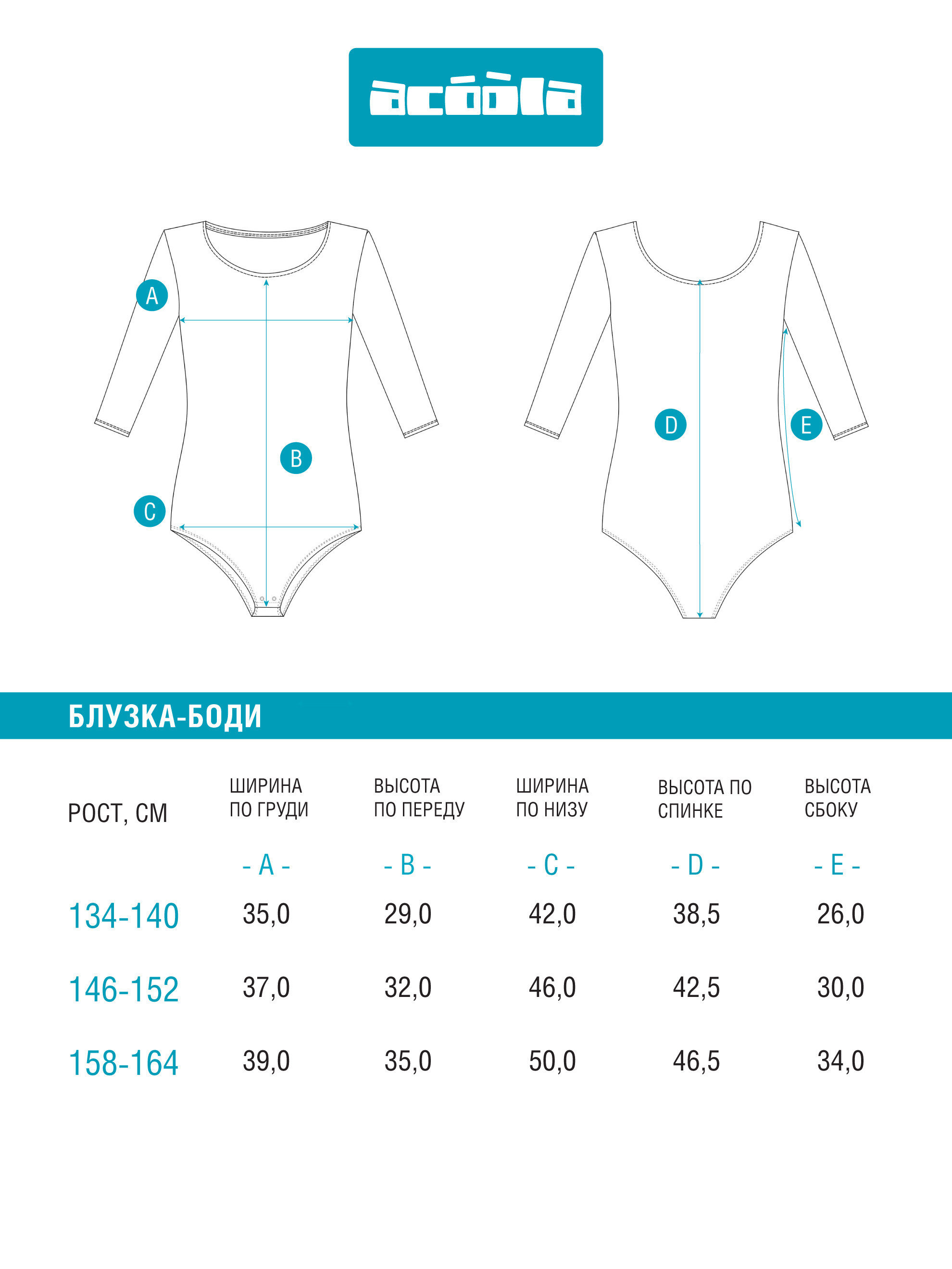 Детское боди из мягкого эластичного хлопка, который хорошо пропускает воздух, немного тянется и не сковывает движения. Модель облегающего силуэта, с круглым вырезом горловины, длинным рукавом. Застежка снизу на 2 кнопки. Модель прекрасно подойдет для занятий хореографией, физкультурой .