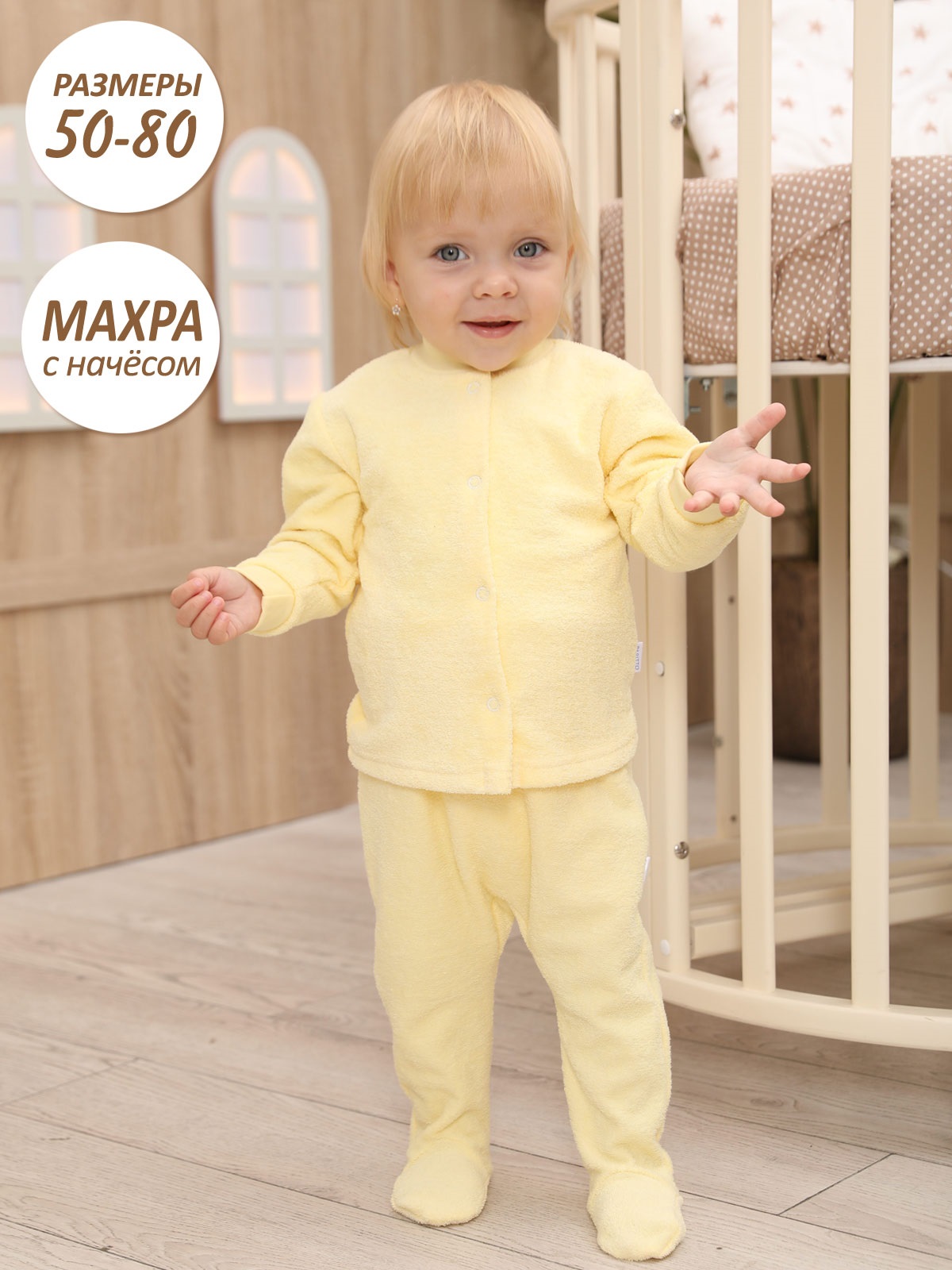 - Приятная теплая махровая ковточка с начёсом внутри. Будет ли скатываться начес - проверим временем. Размеры на фото даны для размера 24-80.