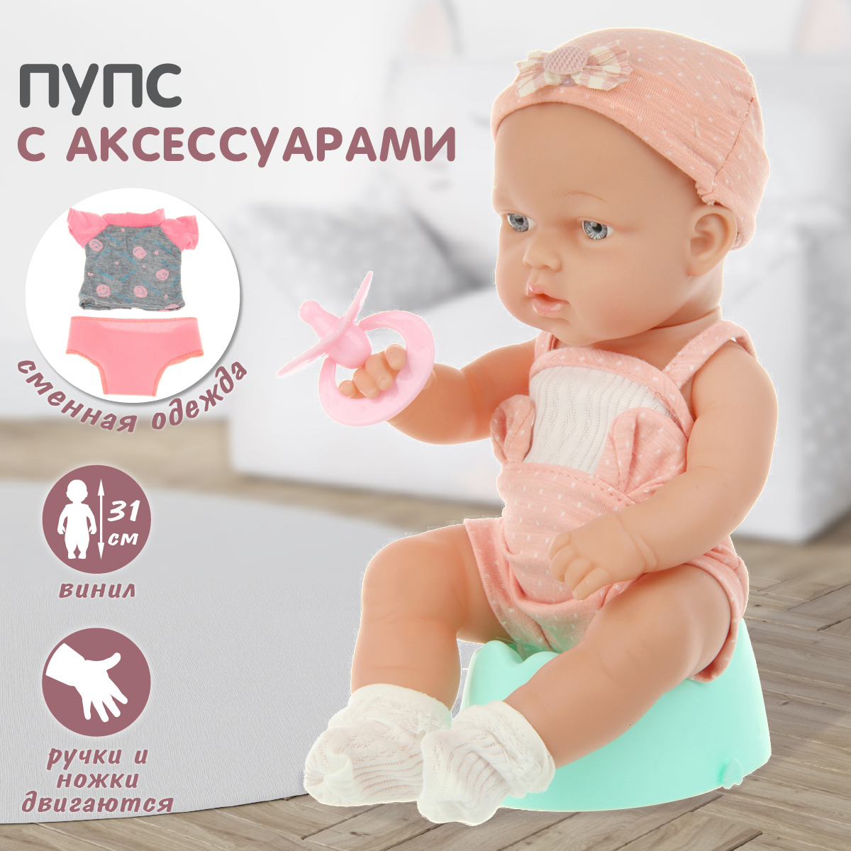 В комплекте пупс, горшок, соска, футболка, трусики.