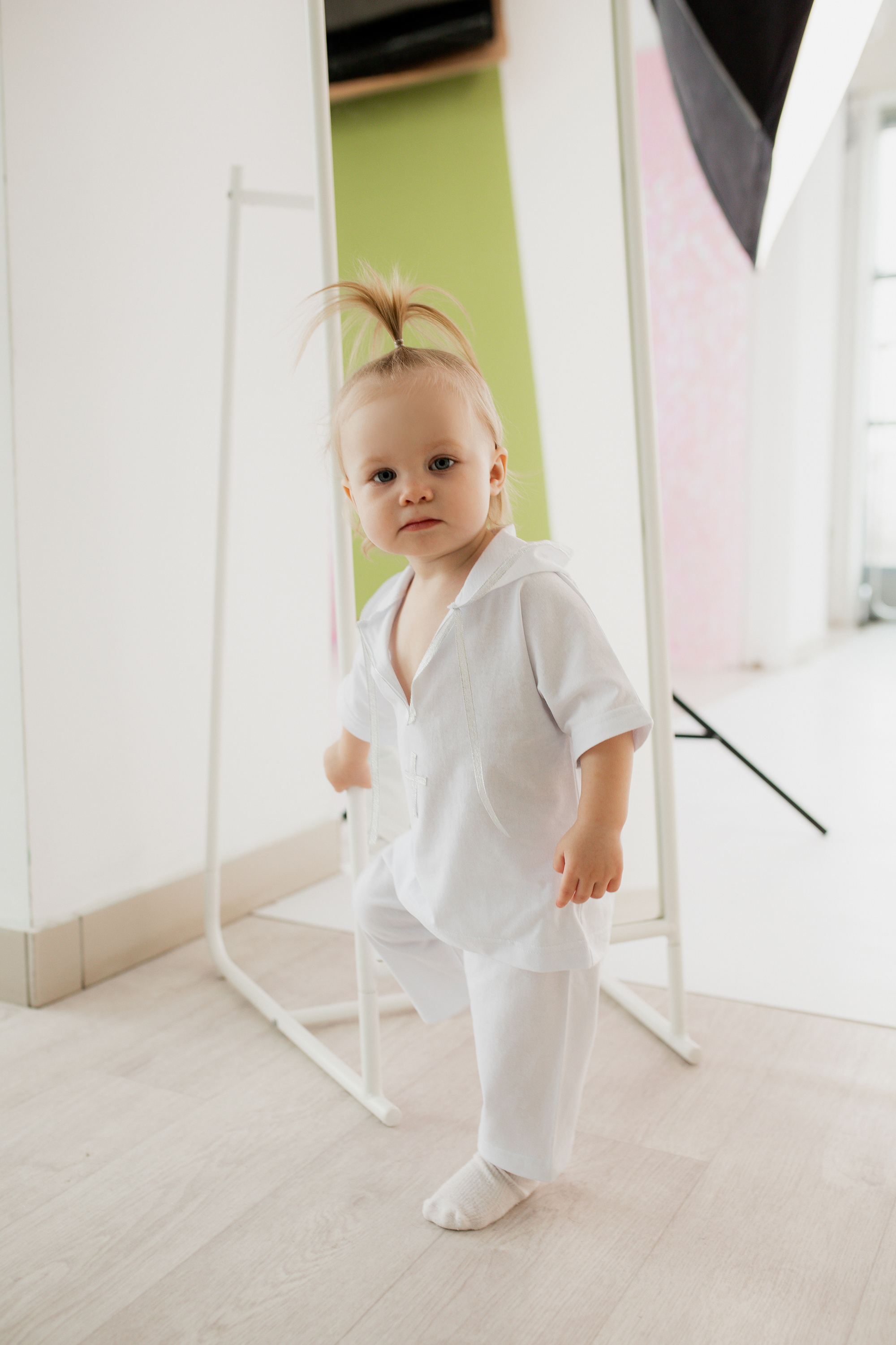 Крестильный комплект , набор детской одежды предназначен специально для крестин. Состоит из рубашечки с длинным рукавом и капюшоном и штанишек на резинке.Серебристая лента на капюшоне ,переходящая в завязки и крестик на рубашечке придают модели особый торжественный вид. Костюм для мальчика выполнен из качественного хлопкового трикотажного полотна -кулирная гладь. Размеры от 62/40 см.-для самых маленьких , 74/44см.-от 6мес. и выше и 86 рост-от 1 до 1,5 лет.