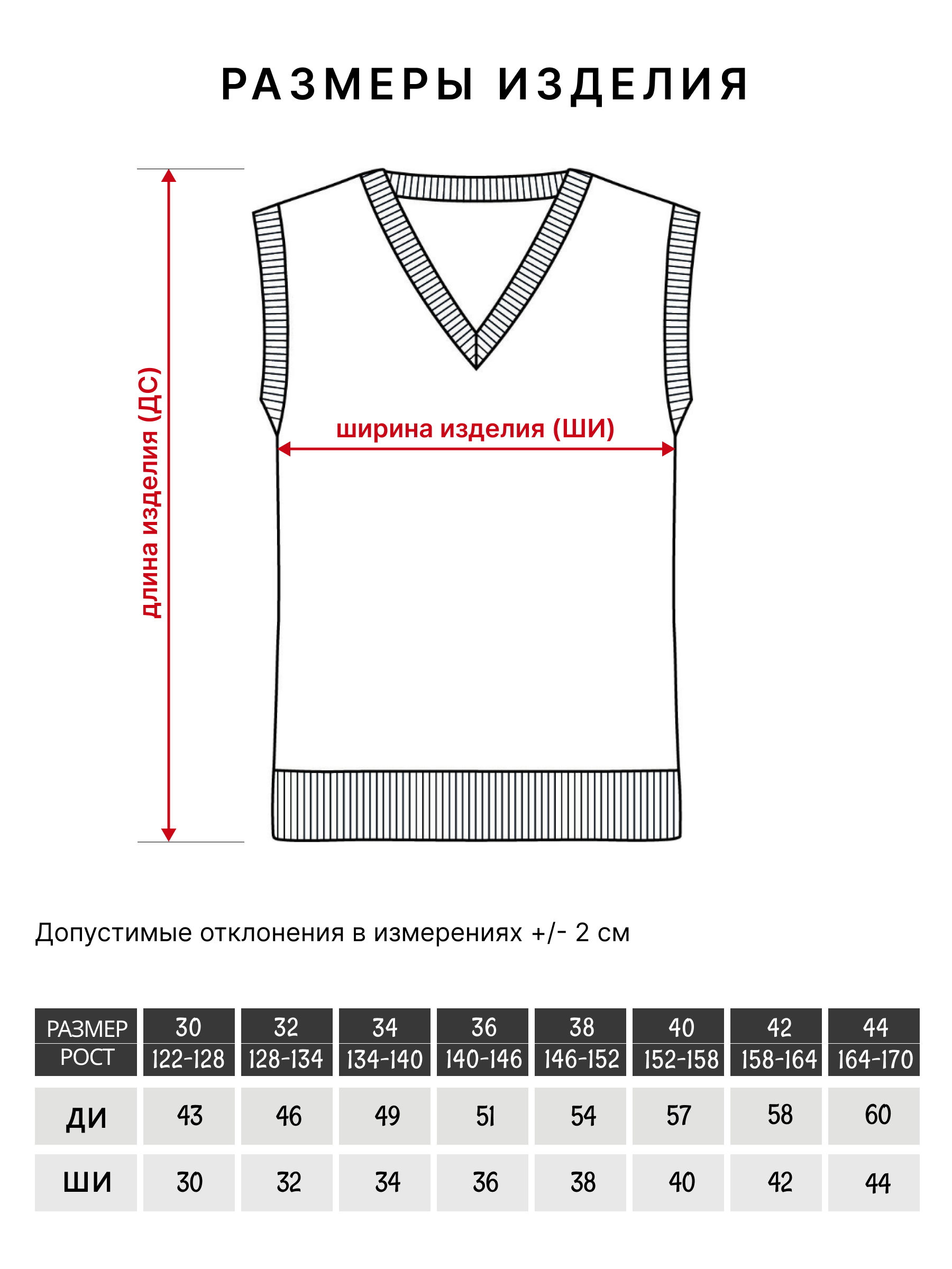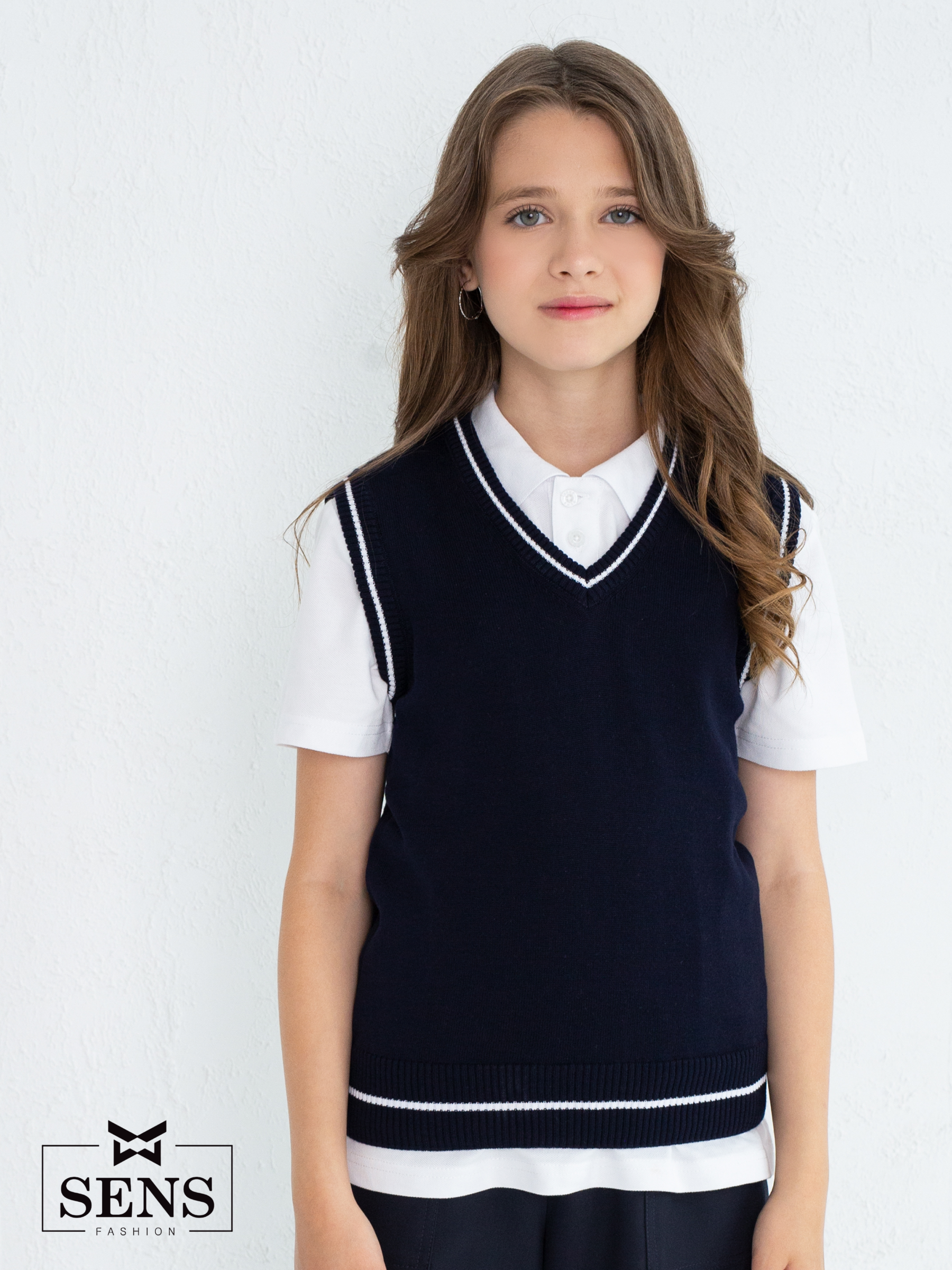 Жилетка для девочки, также, как и жилет для мальчика – гарантированно стильное и в то же время универсальное решение. Качественный трикотажный жилет для школы - унисекс модель - так же удобен для повседневной носки. Детский вязаный жилет выполнен из высококачественного износостойкого трикотажа. Хлопок легкий и экологичный материал, который хорошо пропускает воздух, позволяя коже «дышать», а также сохраняет тепло, что позволяет носить его в прохладную погоду. Он приятен на ощупь и комфортен в носке. Благодаря добавлению полиэстера детская одежда получается прочной, износостойкой, эстетичной, устойчивой к многократным стиркам без усадки и не мнется. Трикотажный жилет сохраняет достойный внешний вид долгое время. Для непоседливых школьников и их родителей наша жилетка – настоящая находка. Синий жилет входит в состав школьной формы в школах, гимназиях, лицеях и других учебных заведениях. Допустимы однотонные жилеты или безрукавки с небольшой отделкой в виде полос по горловине и обтачке рукавов, как в нашей модели. Синий школьный жилет – классическое решение, сохраняющее годами свою актуальность. Безрукавка очень удобна в повседневном использовании, она не стесняет движений, обеспечивает тепло и комфорт, отлично сочетается с классическими брюками или джинсами. V-образная горловина отлично сочетается с рубашкой, блузкой, футболкой поло. Трикотажный жилет – это защита от прохлады и комфорт в теплом помещении. Вязаная жилетка – это возможность создать интересный повседневный или изысканный образ, позволяя ребенку чувствовать себя модно, стильно и комфортно. Мы создаем собственный бренд детской одежды и специализируемся на производстве школьной формы для детей и подростков. Только качественная современная школьная форма для Вас!