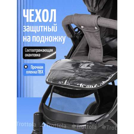 Всесезонный, прозрачный и прочный чехол Trottola на подножку для прогулочной коляски - удобный и практичный аксессуар для родителей при долгих прогулках с малышом на природе или в городе, даже при длительных путешествиях. Сделан из прочной пленки ПВХ 120мкм. Если ребенок сидит в коляске в обуви, чехол защитит коляску от грязи, воды и других загрязнений.